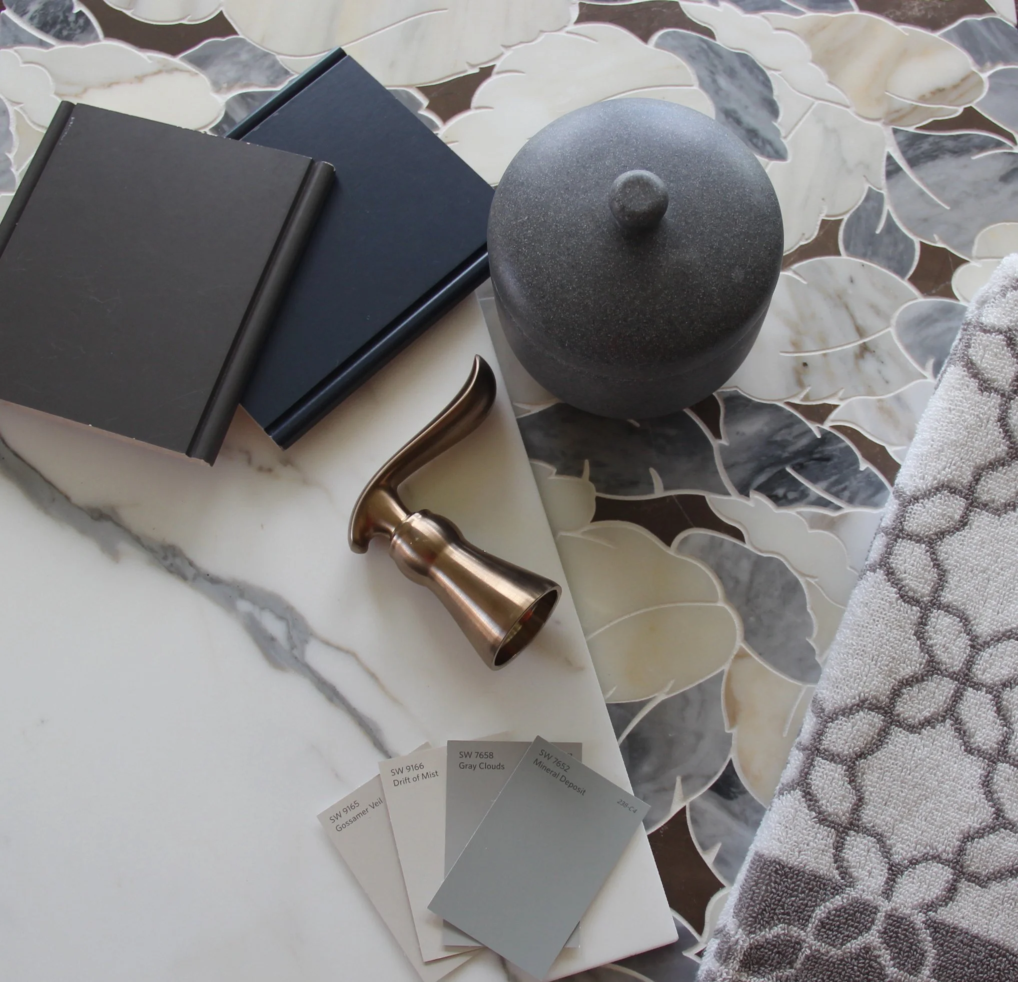 Designer Leaves Client Large Color Samples of Color Palette for Review & Future Shopping of Accessories.