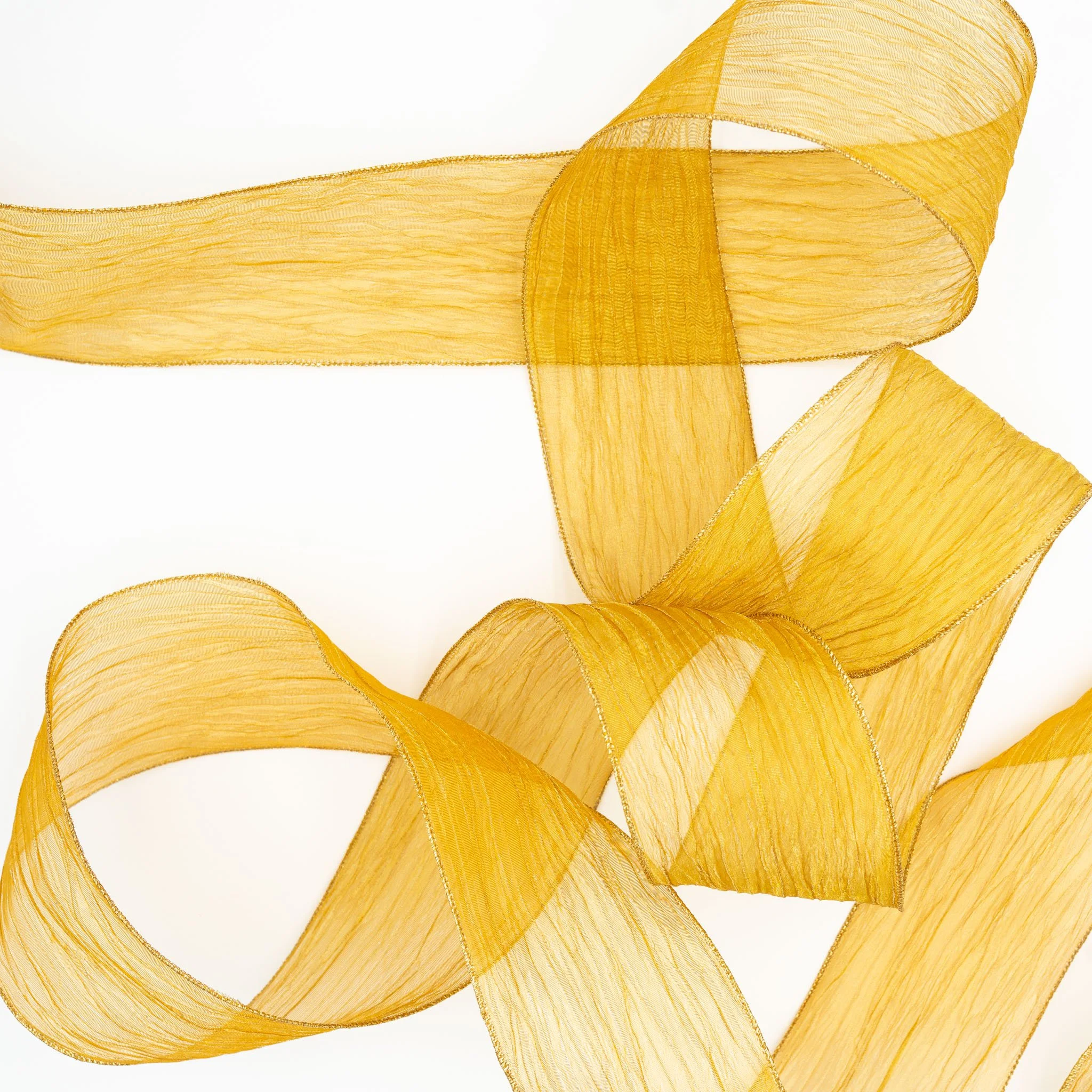 These chinoiserie-inspired glass ornaments layer vibrant peacock shades of blue and teal and are paired with snow white and soft gold highlights. This rich collection is balanced by the airiness of this purposefully and understated 4” wired, transparent ribbon and allows the pattern and deep shades of the set to be the show stopper! This grouping has unique jar-shaped ornaments and hand-painted glitter in exquisite, detailed patterns and tones of blue, green and teal. Designer Tip for High Visual Impact: add gold/white/peacock picks as the tree topper and throughout the tree with a gold metal tree collar.